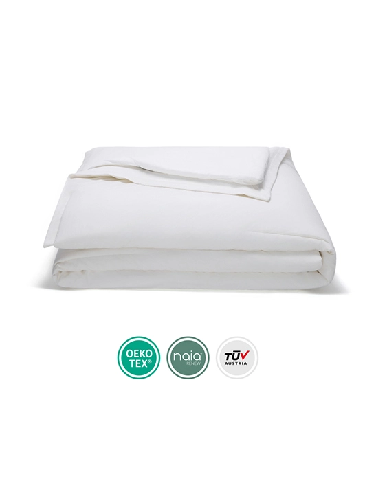 The secret sauce lies in the fill: 30 percent Eastman™ Naia™ acetate fiber (a compostable, OEKO‑TEX® certified miracle) and 70percent polyester. OEKO‑TEX certification confirms the fabric has been tested for more than a thousand potentially harmful substances, setting the gold standard for textile safety. Every material used is fully biodegradable. Its antibacterial, hypoallergenic, and baby‑grade, ideal if you or your kids have sensitive skin or allergies. If you tend to get back acne or frequent skin breakouts, give this a try.